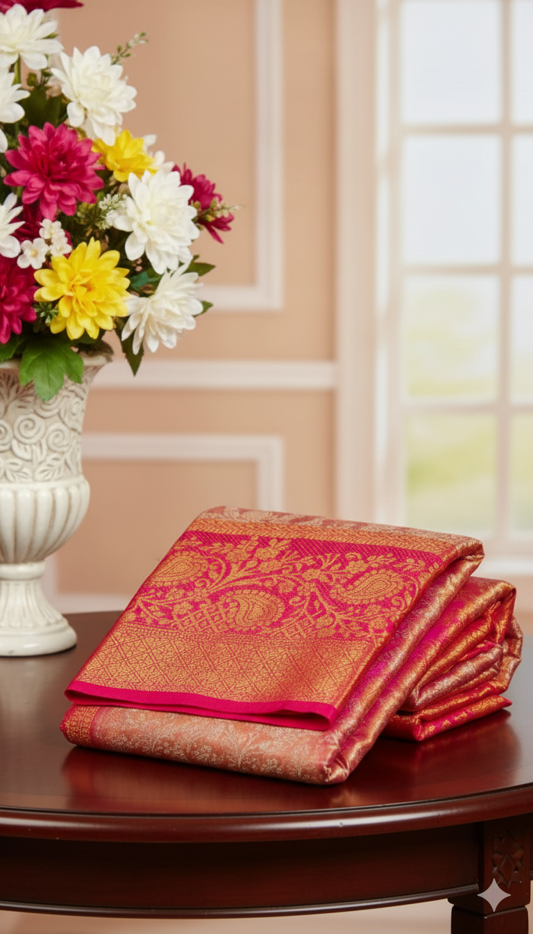 This elegant pattu silk saree comes with a vibrant body and rich zari woven border. The intricate patterns on the pallu and blouse highlight traditional craftsmanship, making it perfect for weddings, festive occasions, and parties. The smooth silk fabric ensures a graceful drape and luxurious feel.